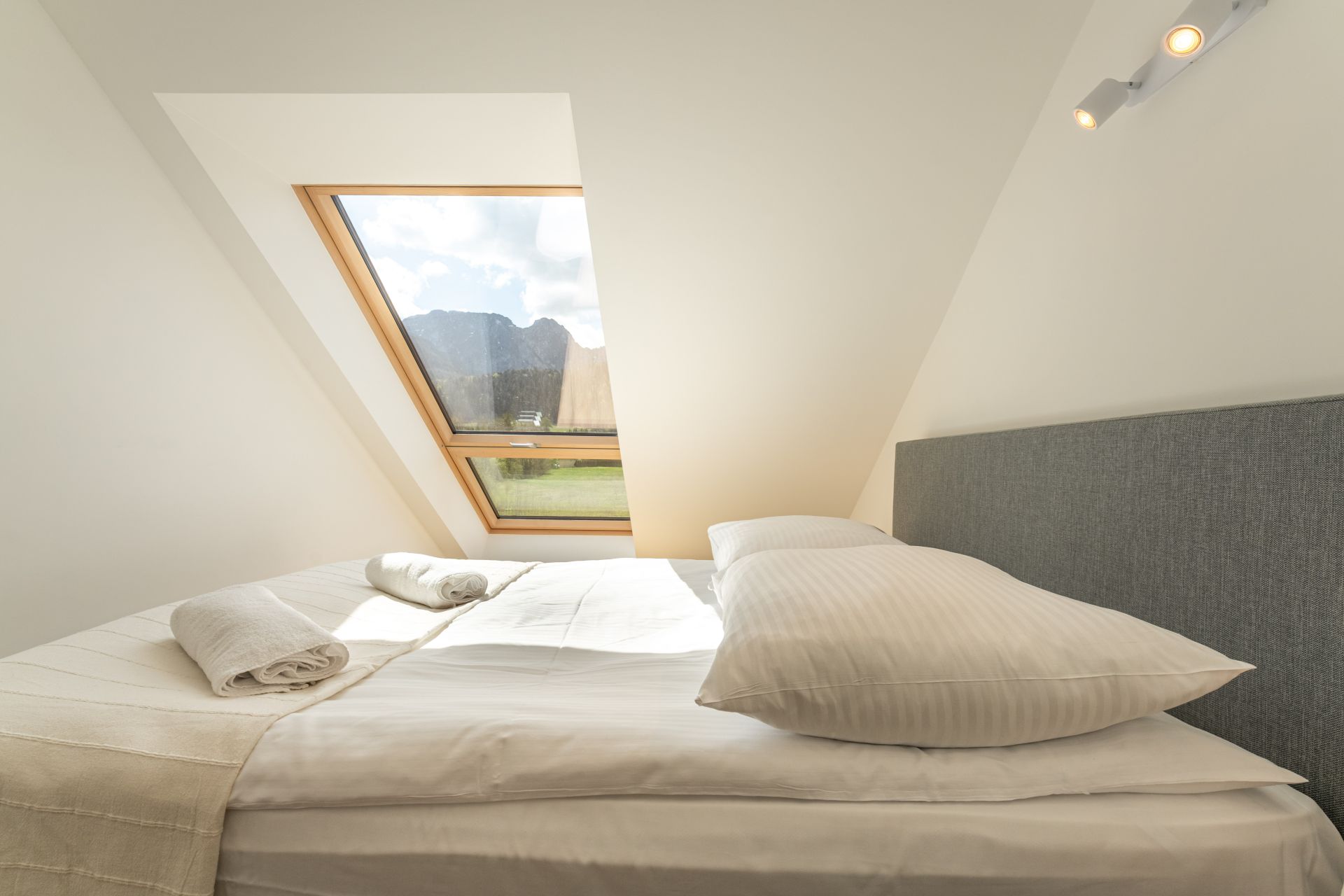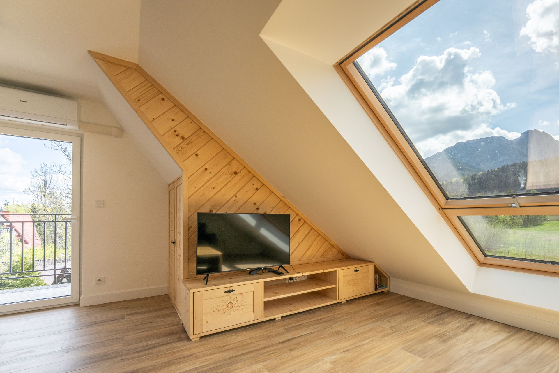 W salonie znajduje sie rozkładana sofa dla dwóch osób, w sypialni znajduje się lóżko małżeńskie. Kuchnia jest w pełni wyposażona we wszystkie niezbędne sprzęty. Z okien rozpościera się piękny widok na Giewont .Apartament posiada balkon z którego także możemy podziwiać panoramę Tatr.